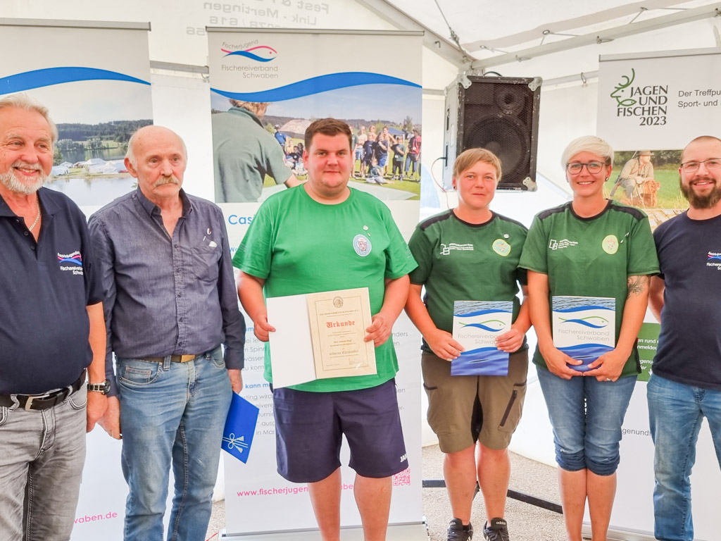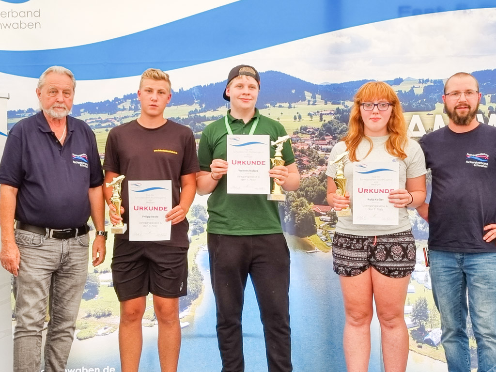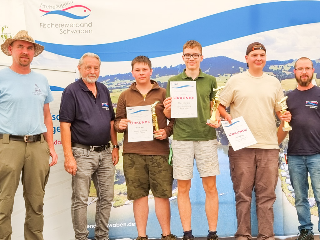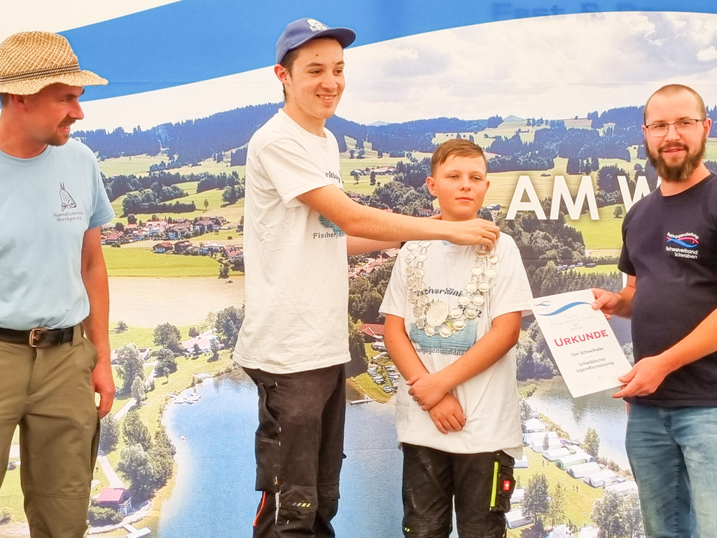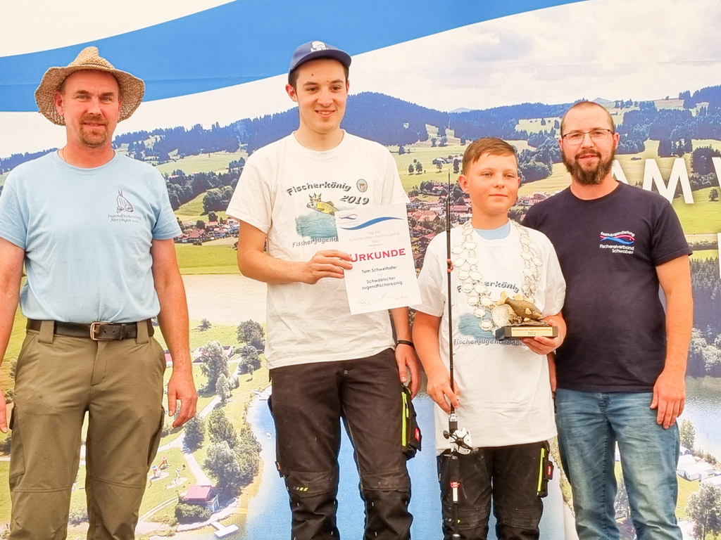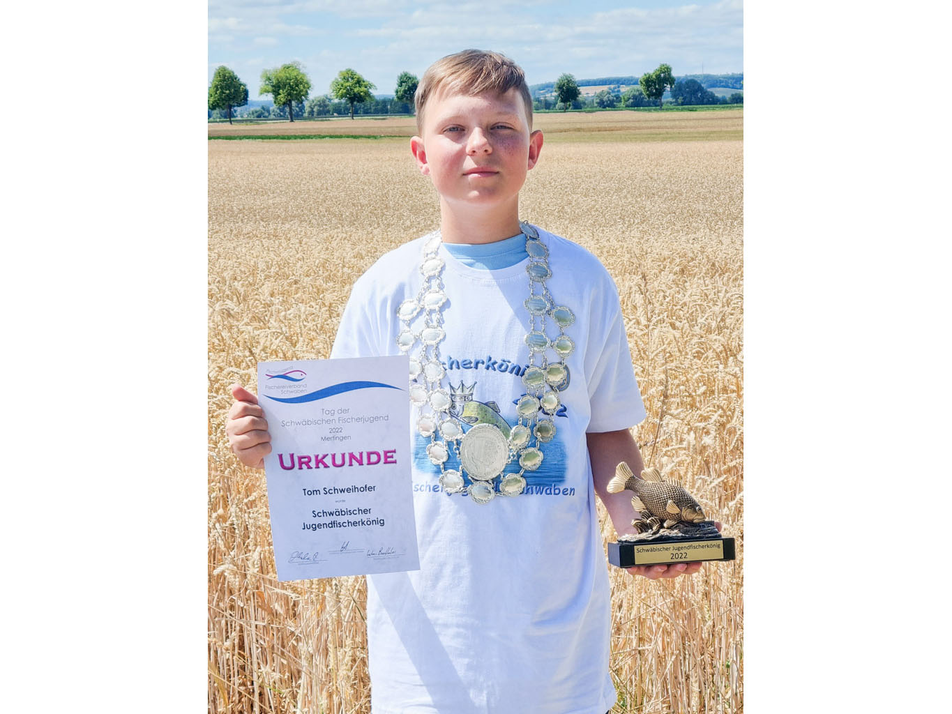 Beim Königfischen nutzte der ausrichtende Fischer-Club Mertingen seinen Heimvorteil. Die ersten drei Plätze belegten Mertingen Jungfischer mit großen Karpfen. Schwäbischer Jugendfischerkönig wurde Tom Schweihofer aus Mertingen. Er konnte einen schönen Schuppenkarpfen mit 12.320 g zur Waage bringen. Petri Heil!