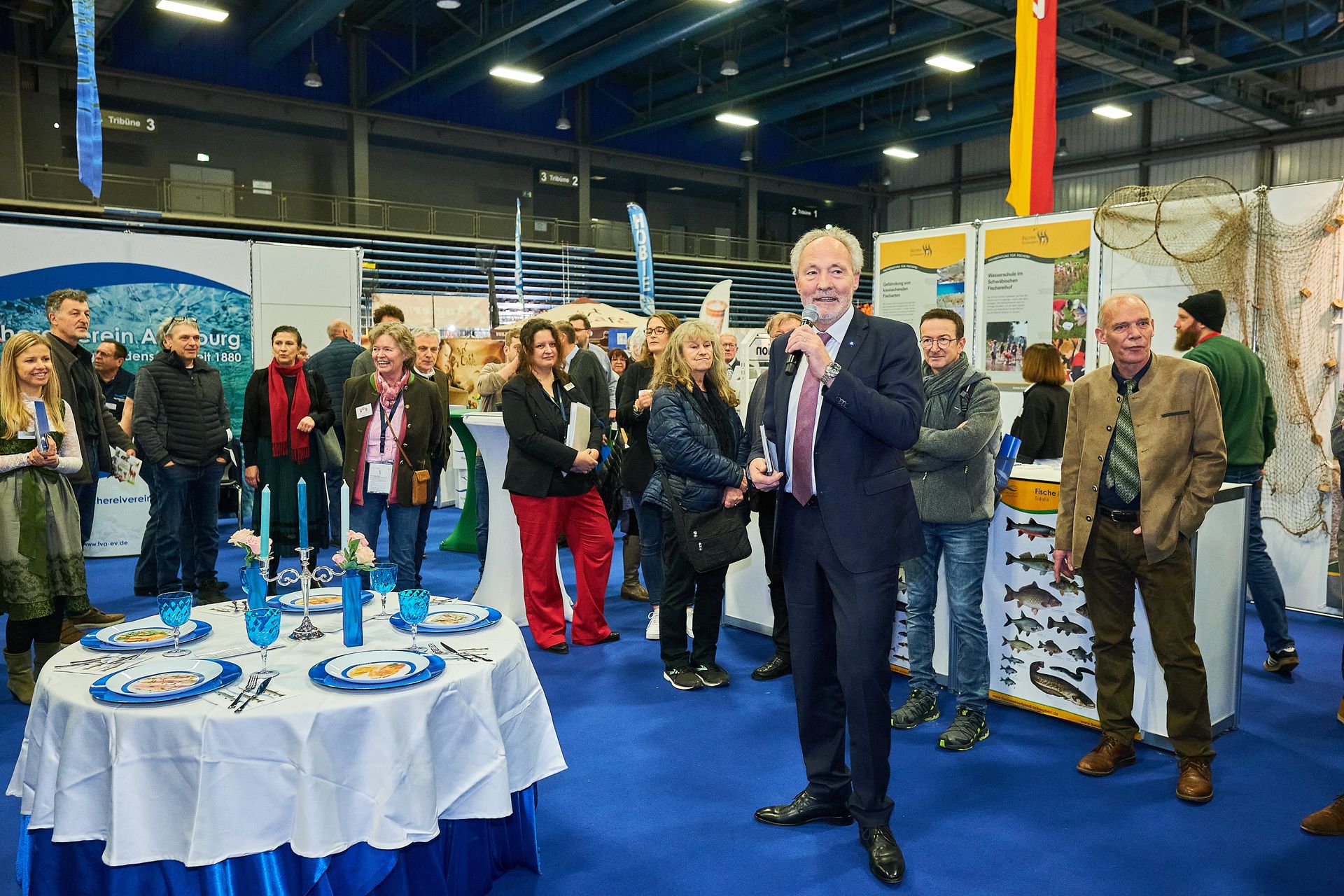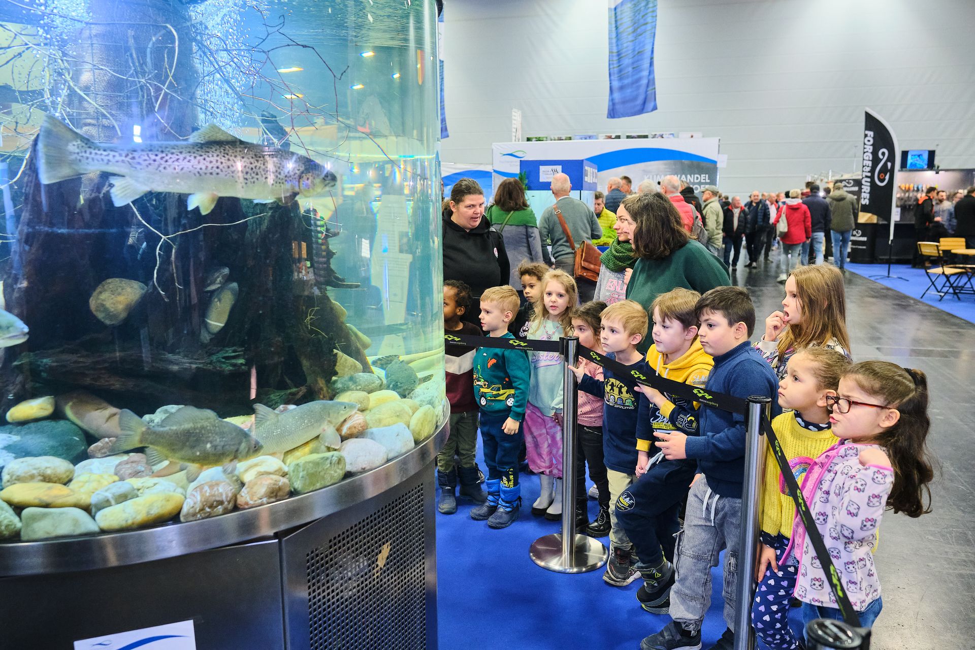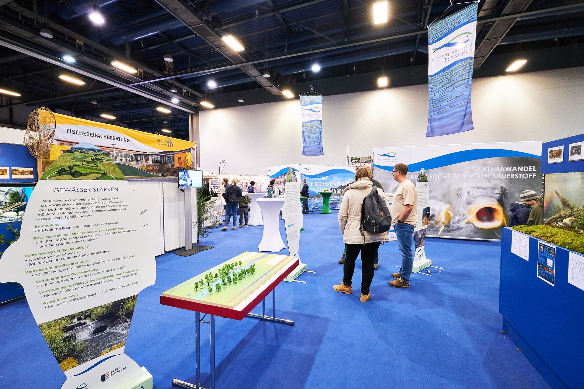 Rund 25 000 Besucherinnen und Besucher waren an drei Tagen zu Gast auf der Messe und sammelten Eindrücke bei den rund 300 Ausstellern. Dieses Jahr war die Ausstellungsfläche des Fischereiverbandes Schwaben und der Fischereifachberatung das erste Mal in der Schwabenhalle. Die Messebesucher drängten sich auf der Sonderfläche, um die Fische in den Aquarien zu beobachten, sich beraten zu lassen oder sich über die Themen „Heimischer Fisch als Lebensmittel“ und „Gewässer im Klimawandel“ zu informieren.