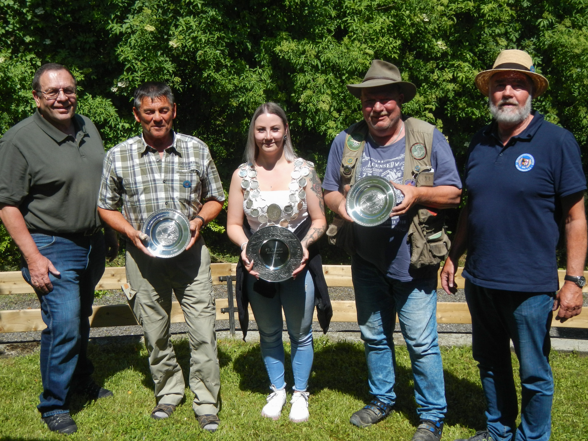 Unser Schutzpatron Petrus war an diesem Tag eindeutig auf Seite des Gastgebers und Ausrichters, dem Bezirksfischereiverein Memmingen. Der 1. Vorstand Manfred Wiblishauser konnte sich nicht nur über „seine Königin“, sondern auch über bestes Wetter freuen. Seine Helfer sorgten zudem vorbildlich dafür, dass es den Gästen beim Fischerheim in Steinheim an nichts mangelte. Peter Steinle führte als Vertreter des Verbandes die Siegerehrung durch, dankte dem Bezirksfischereiverein Memmingen für die perfekte Organisation, freute sich über die zumindest konstant gebliebene Teilnehmerzahl und hoffte auf ein Treffen im nächsten Jahr – nicht ganz unbegründet, denn ein Großteil der Teilnehmer sind Stammgäste bei dieser Veranstaltung. In geselliger Runde mit mehr oder weniger beweisbaren Erzählungen rund ums Fischwasser endete das Königsfischen 2022. Die beliebten Erinnerungsteller mit Fischmotiven waren dann ein kleiner Trost für die, die an der Iller ohne Fang geblieben waren.